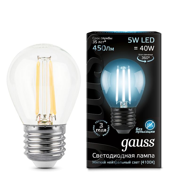 Лампа Gauss LED Filament Globe E27 5W 4100K 105802205