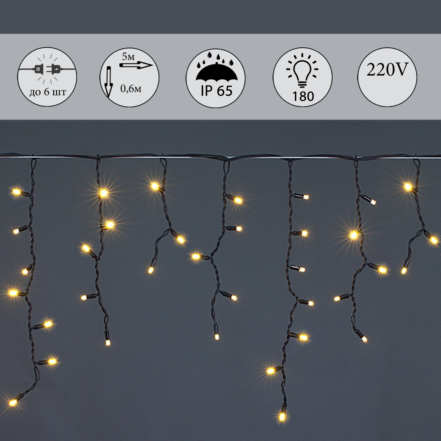 A-020 LED WW светодиодная "бахрома" 3x0.6м 140LED черный провод влагозащ., морозостойкий