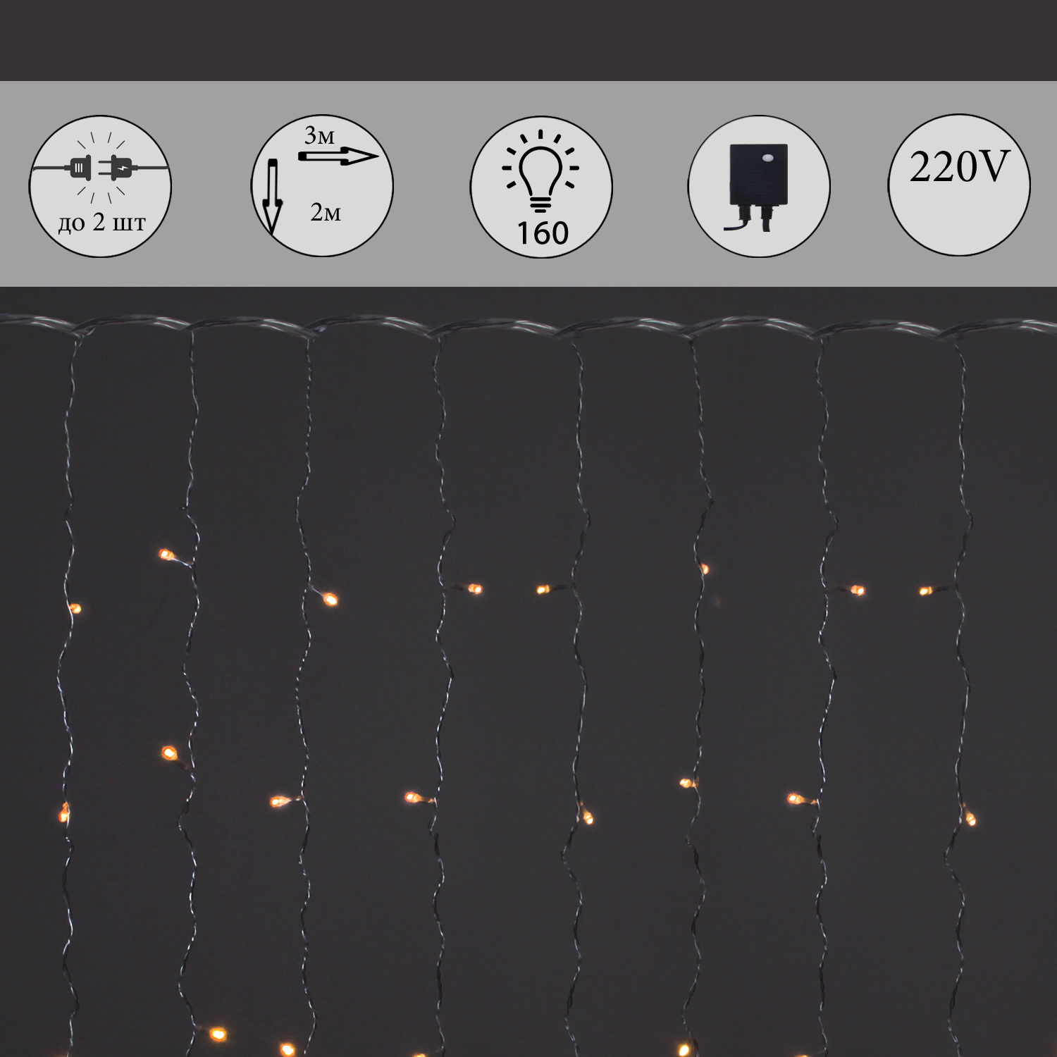 A-960 WW светодиодный занавес 3х2м, 160 LED, прозрачный провод, с контроллером